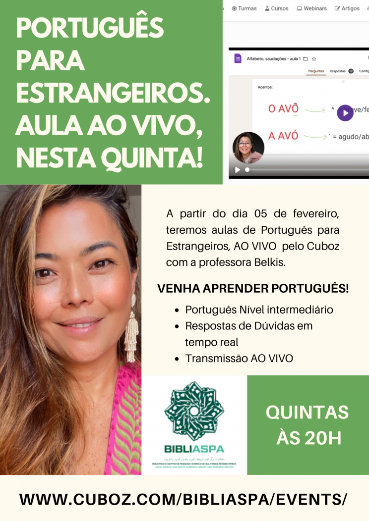 Queridos amigos, nesta quinta feira, dia 12 de fevereiro, às 20 horas, teremos mais uma aula de Português Nível Intermediário, AO VIVO, com a professora Belkis.